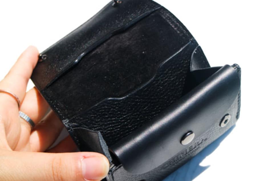 品のあるブラックを基調にデザインされたシンプルで使いやすい小銭入れです。