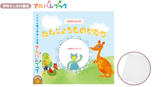 生後2~3カ月の写真で作るアルバム絵本です。 あらかじめ用意されたストーリー・挿絵を使って、まるで絵本のようなアルバムを作れます。 簡単に足形・手形のとれる専用キット付きです。 出産祝いに世界に一つだけの絵本を贈るのは素敵ですね!