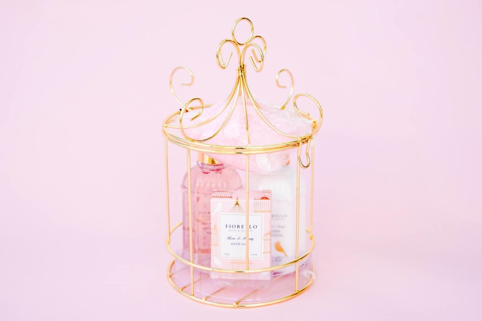 女性らしくメルヘンなデザインのFIORELLO ボディケアセットです。