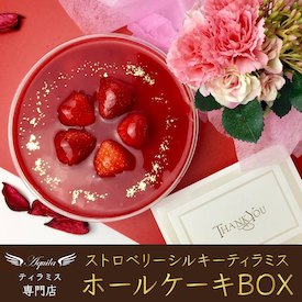 真っ赤なイチゴとイチゴソースに金粉を散らしたティラミスケーキです。 1980年代に爆発的ブームを起こしたティラミスは、還暦世代の人が好きなケーキの一つではないでしょうか? 還暦祝いにぴったりな高級感のあるケーキですね。