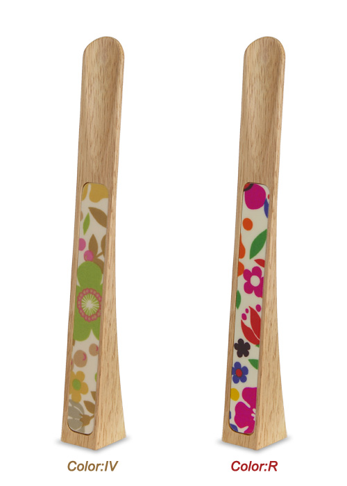 こちらのシューホーンは、北欧調の布地タイルが可愛い、木製の靴べらです。 自立式で使いやすいのも特徴です。