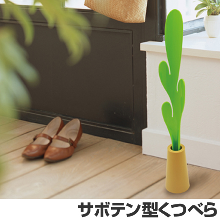 こちらのシューホーンは、サッと手に取れる、スタンド付きのおしゃれなサボテン型の靴べらです。 玄関を明るく楽しく彩ります。