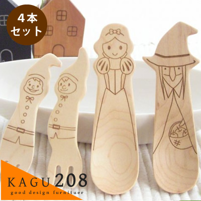 子供から大人まで、女性なら大好きなおとぎ話の世界がそのまま形になった木のスプーン。 白雪姫、魔女、小人がスプーンとフォークになった可愛いセットです。 北欧らしいおしゃれなデザインながらも、新形状で使いやすいのが特徴です。 使用されている木材は、別名メープルと呼ばれる楓の木が原料となっているため、とても頑丈につくられています。 木で作られているためほんわか暖かく、ひとつひとつ木目が違うのも天然木だからこそと評判です。