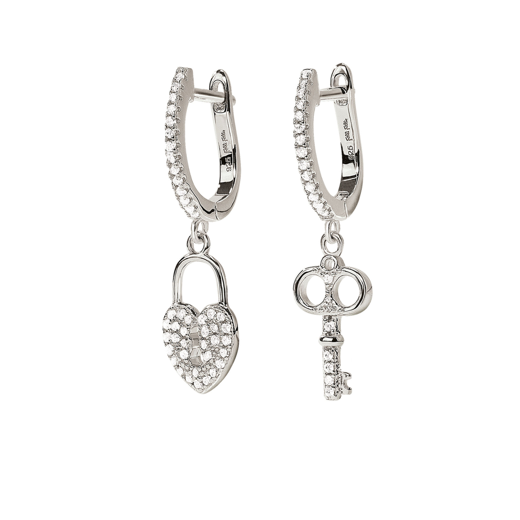 シルバーコレクションの、チャームメイツシリーズです。 キーとロックという欠かせない組み合わせが、耳元を明るく演出。アシメントリーデザインのため、気分によって片耳着けをしたり、手持ちのピアスと組み合わせたりしてアレンジを楽しむことができます。