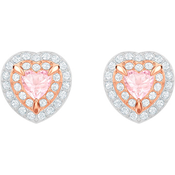 キラキラの輝きを放つ、クラッシックなハート型ピアス。ローズゴールドと、パステルピンクを使用した可愛らしさ溢れるアイテムです。ワンピースにはもちろん、パンツスタイルにあわせても女性らしい魅力をグッと引き出してくれます。