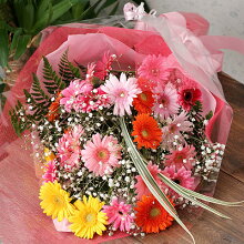 ガーベラの花束も母の日ギフトにはおすすめ! ガーベラの花言葉は「希望」。 また、ガーベラは色ごとに花言葉が、ピンクは感謝、赤は神秘、白は希望、黄色は究極美などと違います。 感謝の花言葉もあるカスミソウも組み合わさったこのフラワーシャワーは、とても可愛らしく、母の日にもぴったりですよ!
