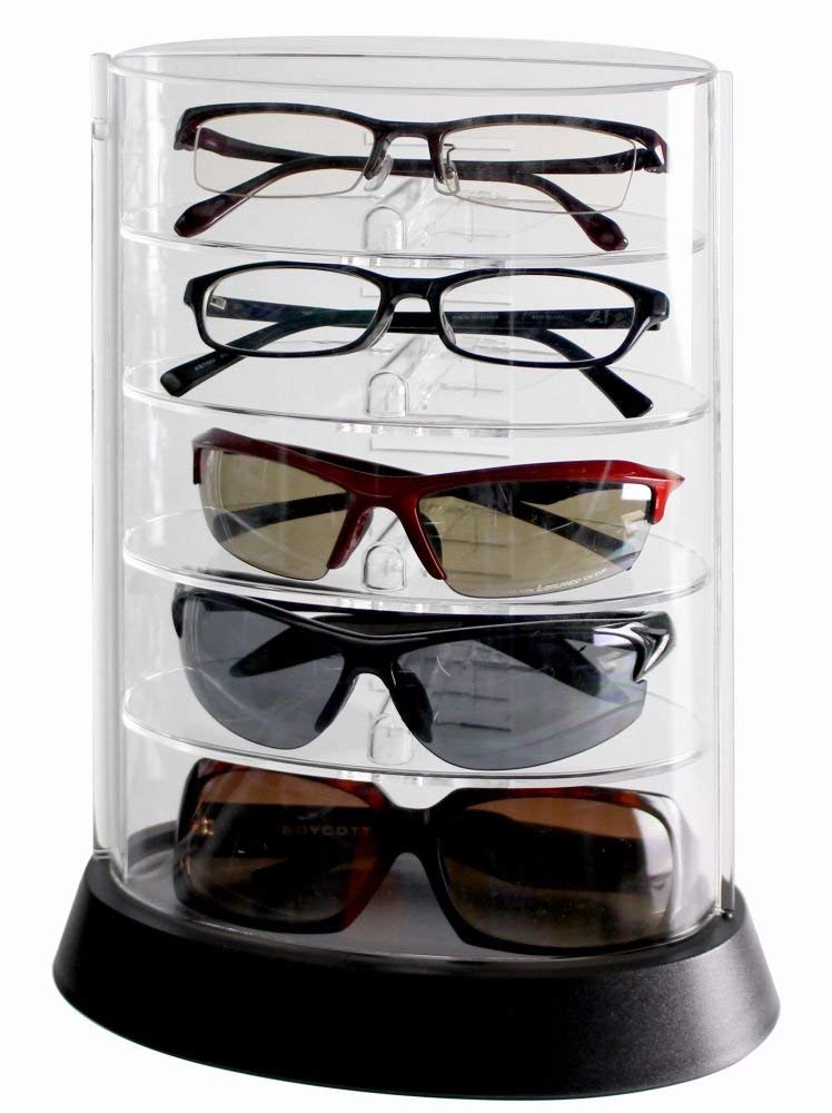 次にご紹介するのはこちらです。 こちらのメガネケースもタワー型です。 メガネが5個も収納できちゃいます! 専用トレーは取り外し可能で、メガネやサングラスの大きさに合わせて収納ができます。 また、トビラは前開きタイプなので、メガネが取り出しやすくなっています! 空いたスペースにアクセサリーなどの小物を置いたり、ミニカーやミニフィギュアなどと飾ってもいいですね!