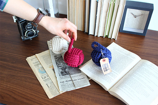 こちらは、まるでロープみたいな文鎮! モンキーフィストノット(猿のこぶし結び)とよばれるモチーフです。 紙や資料を押さえるのはもちろん、読みかけの本の間に挟んでおくのにも便利な形。 ホワイト、バーガンディ、ネイビーのカラーバリエーションから選ぶことができます。 おしゃれなインテリアが好きな方へのプレゼントにぜひ!