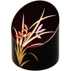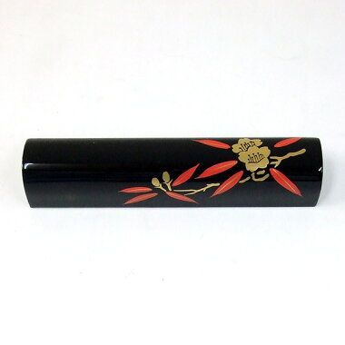 こちらは、草花が描かれた漆器の文鎮です。 竹型のフォルムは安定し、実用性も高いといえます。 黒地に朱色、溜色という、漆器らしい色合いで、落ち着いた空間を作り出します。