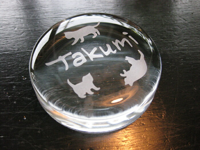 こちらの文鎮は、ねこが好きな人へのプレゼントにおすすめ! 名前と一緒にくつろぐ猫が、味わい深く描かれています。 ガラス製で安定した形状なので、とっても使いやすく、いつも側に置いておきたくなる一品です。 プレゼントにもらったら、きっと愛用したくなるはず!
