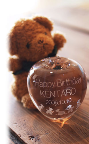 なんともかわいいクリスタルのりんご! この文鎮は、メッセージと名前、日付を入れてプレゼントすることができます。 お誕生日祝いや出産祝いに、赤ちゃんの名前を入れるプレゼントとして人気です。 ずっと使えるうえに、記念の言葉が入っていたら、一生ものになりそうですね!