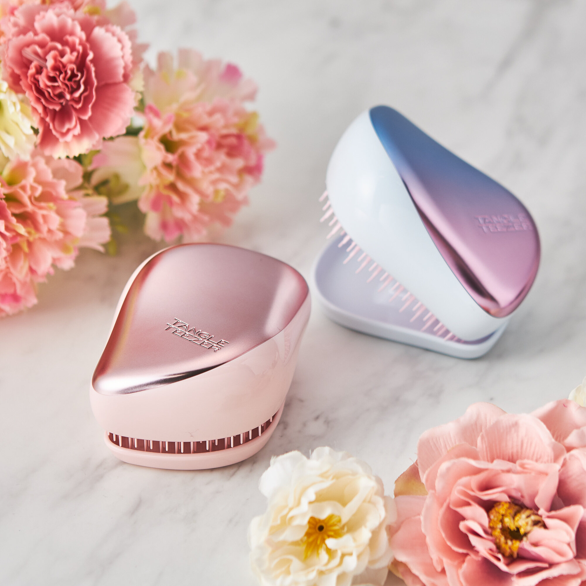 元ヴィダルサスーンのカラーリストが開発した「TANGLE TEEZER(タングルティーザー)」のコンパクトスタイラーです。髪を梳かすだけで簡単にサラつや髪になれるヘアケアブラシです。子供からお年寄りまで幅広い年齢の方にお使いいただけます。嬉しい保護カバー付き。