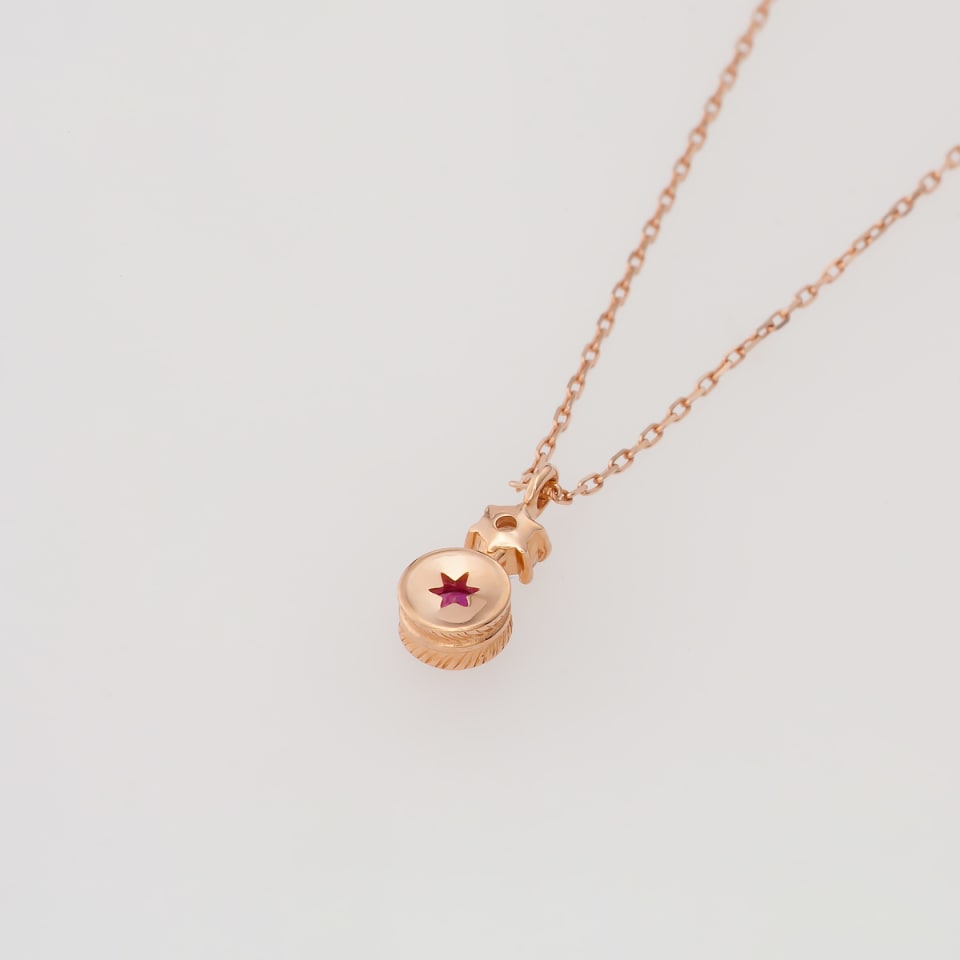 それぞれの誕生石に合わせた石座で包み、キュービックジルコニアの煌めきを添えています。 7月の誕生石ルビーは、フェザーの石座で包まれた丸みのある可愛らしいデザインでお届けします。
