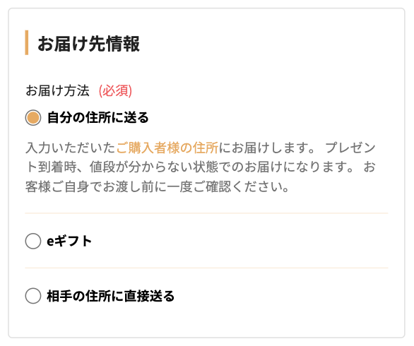 A.購入後に発行されるURLを使って贈り物をお相手にお送りする機能です。 購入後に発行されるURLをお相手にお送りし、URLからご住所や受け取り希望日時などをお相手にご入力いただきます。入力されたご住所に贈り物を直接お届けしますので、お相手の住所をご存じでなくてもギフトが贈れるサービスです。 ギフトが届くまで中身をお相手に知らせずに贈れる機能や、色や香りを選び直せる機能、名入れの文字を受取手に指定いただける機能など、さまざまな贈り方に対応できます。