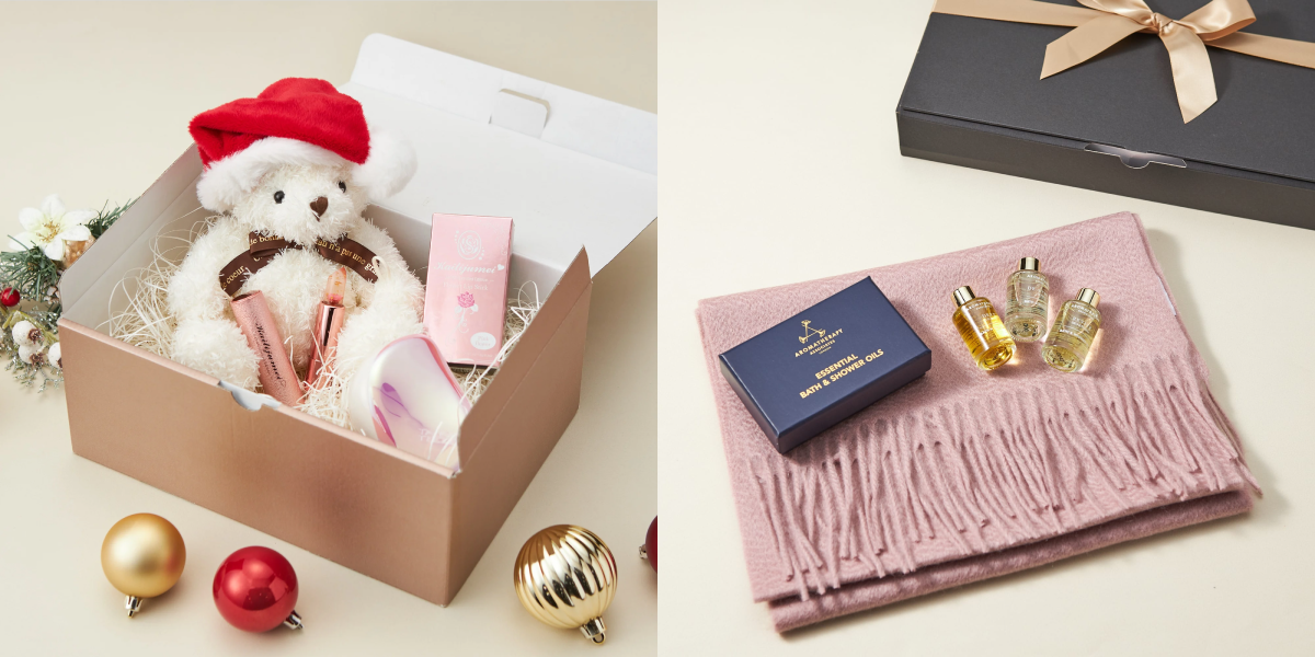 2色から選べるクリスマスデザインのギフトボックスに入れてお届けします。