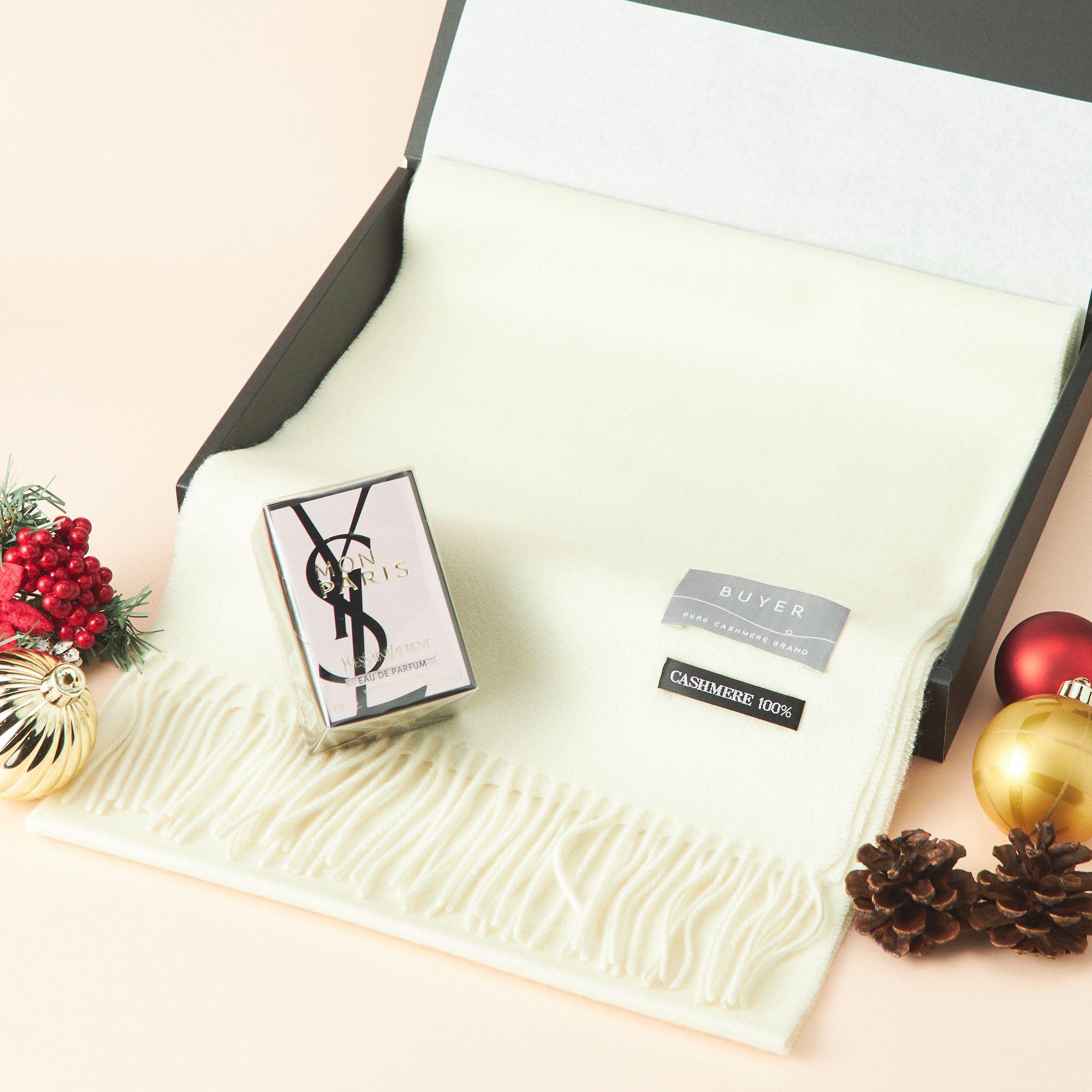 【名入れ】冬の贅沢ギフト YSL香水&カシミヤマフラーギフトセット
