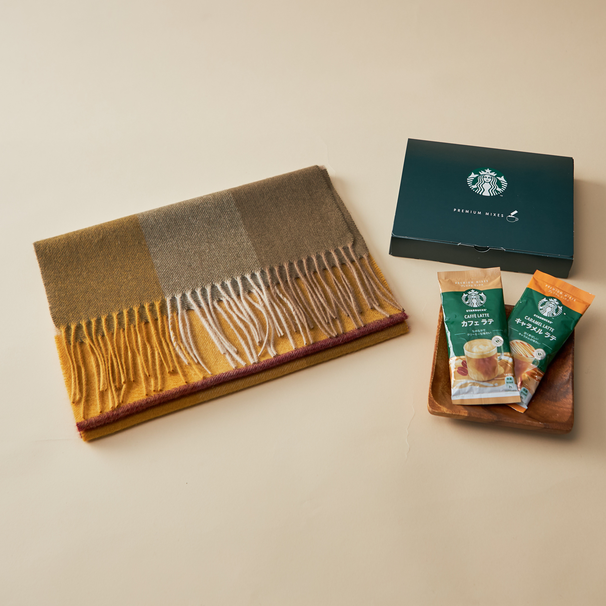 【名入れ/クリスマス限定ボックス付】大切な人に贈るカシミヤ100%マフラーとカフェギフトセット