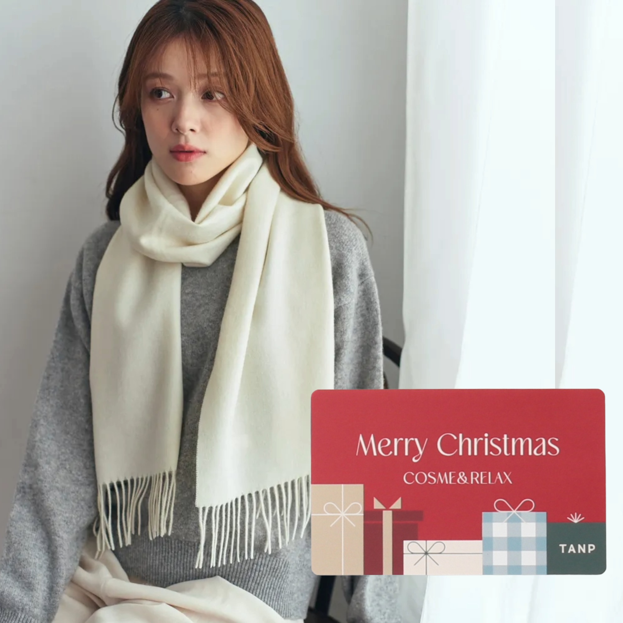 カシミヤ100%マフラーと本物のお花が入ったティントリップの限定セット。クリスマス限定ボックスにお入れしてお届けするので、冬の贈り物にぴったりです。