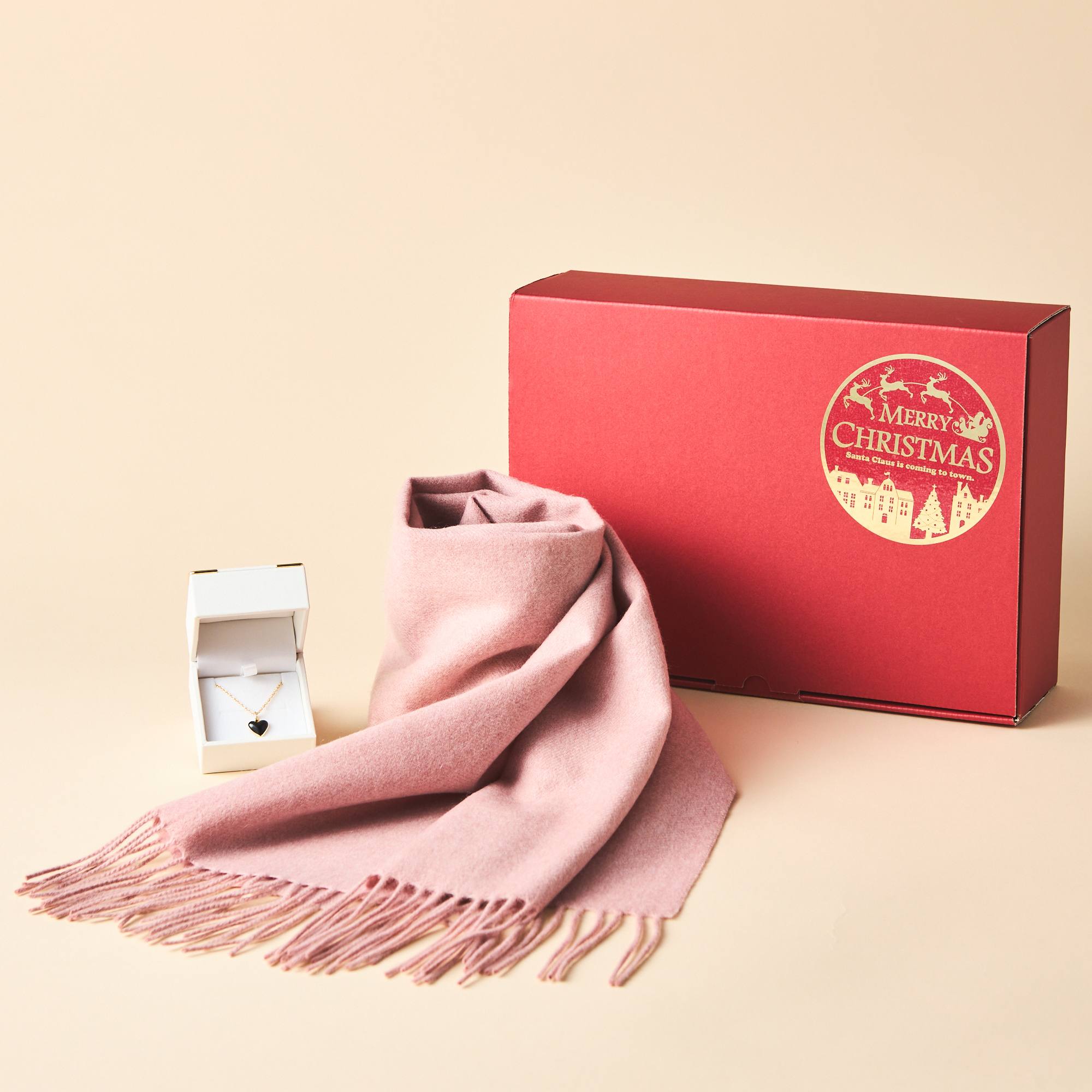 【名入れ/クリスマス限定ボックス付】カシミヤ100%マフラーとムードネックレスセット
