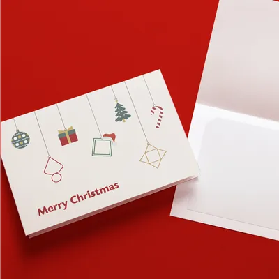 クリスマスにおすすめのデザイン。 二つ折りの台紙に名刺サイズのカードをお入れします。 印字なし、印字ありのどちらかをお選びいただけます。 オプション価格:100円〜