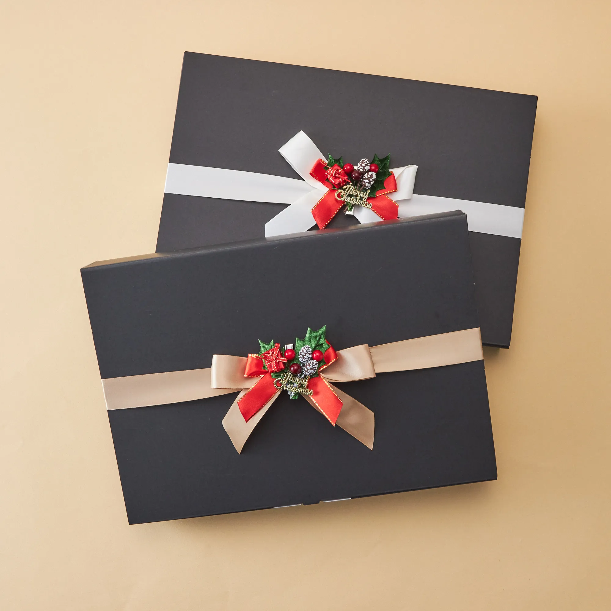クリスマス限定の装飾をつけてラッピングいたします。 リボンの色はお選びいただけません。ご了承ください。 サイズ:横334mm×縦239mm×高さ48mm オプション価格:680円