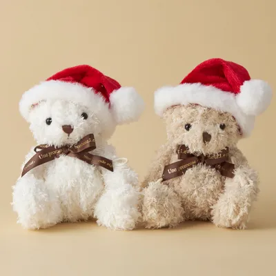 サンタの帽子をかぶった、触り心地にこだわった愛らしいバニラとキャメルのテディベアを同梱してお届けします。 バニラ、キャラメル別々でもご利用いただけます。 ※手作業で作られているため、表情などに個体差があります。 オプション価格:2,250円〜