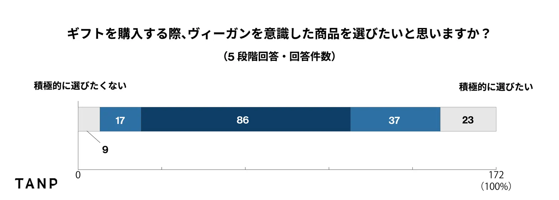 物理的な商品と距離の近いトピックの例として「環境」「フェアトレード」「ヴィーガン」の3つを挙げ、「それらが意識されたギフト商品を選びたいか」をヒアリングしたところ、多くの回答者からポジティブな回答が得られました。 「環境」や「フェアトレード」のトピックで積極的に「選びたい」が選択されたことは、使用者が自分以外である「ギフト」において、比較的好みに左右され辛い(相手の使用を阻害し辛い)ことが考慮されているのではないかと推測されます。