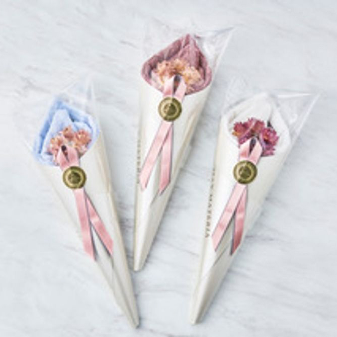 ふわっふわの花束をプレゼント。タオルソムリエ最高傑作のタオルハンカチフラワーです。高級感のある洗練されたデザインとクオリティの高さを実現したタオルは、吸水性はもちろん空気をまとうような優しい触り心地が特徴です。 かわいらしい華やかな見た目は、女性へ就職・転職祝いにぴったりです。