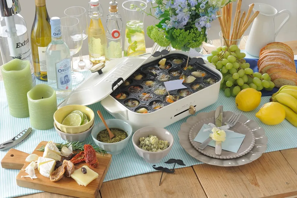 「BRUNO(ブルーノ)」のコンパクトホットプレートに、お肉や野菜、焼き魚などをおいしく焼き上げる専用のグリルプレートがついたセットです。きれいな焼き色がついて、余分な脂を落とし、ヘルシーにお料理を楽しめます。取り外して丸洗いできるので、お手入れも楽々です。