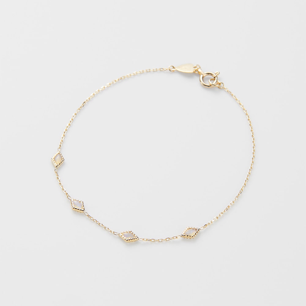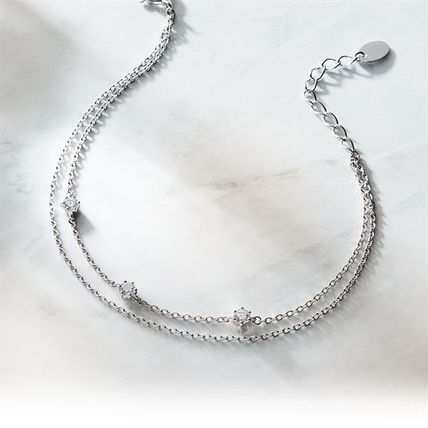 大粒キュービックジルコニアがきらめくブレスレットです。 5種類のカラーバリエーションは、お相手にぴったりのカラーをお選びいただけます。 繊細なチェーンに大粒のキュービックジルコニアのブレスレットは、手元を美しく演出してくれます。