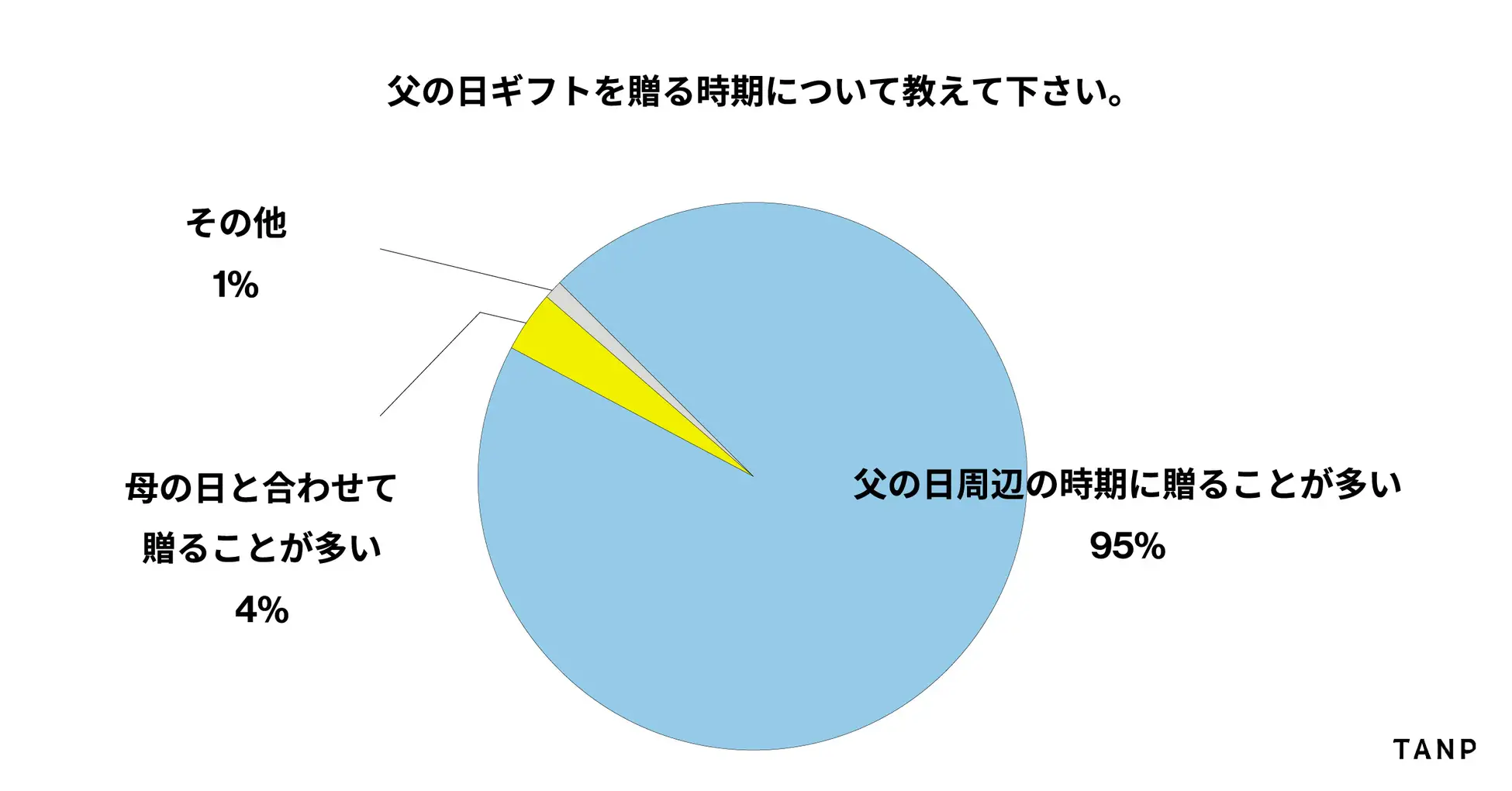 両親へ気持ちを伝えることを目的とした近い時期のイベントとしては5月の「母の日」がありますが、贈る時期については9割以上の方が「父の日周辺の時期に贈ることが多い」と回答。多くの方が個別のイベントとして準備をされているようでした。