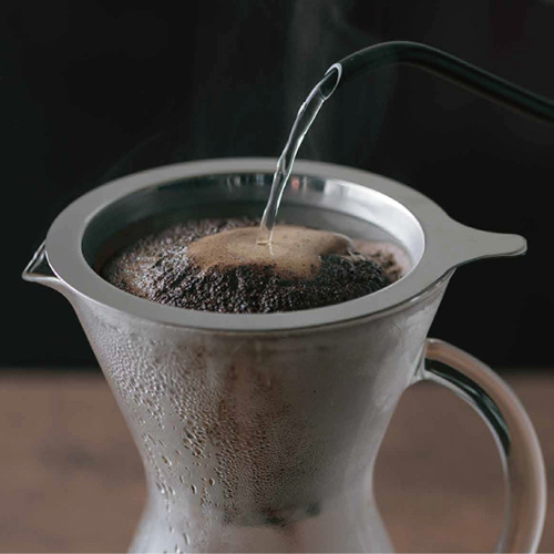 コーヒーの美味しさを引き出す、純金メッキのフィルター。金属フィルターは豆本来の特徴がダイレクトに抽出されるためペーパーフィルターとは香味が変わります。特にゴールドフィルターはメッシュが純金コーティングされているため化学変化に強く、味と香りに対して最も影響が少ないフィルターです。