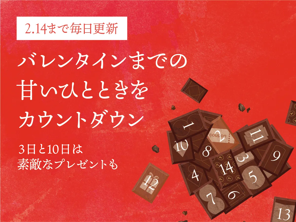 バレンタインまでの甘いひとときをタンプと一緒にカウントダウンしませんか? スタッフ厳選のおすすめ情報やお得なキャンペーンをお届けいたします。