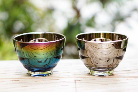 ちょっと変わったおしゃれな茶器をご紹介します。 こちらは、ガラスとチタンで作られたペアの茶器になります。 とても印象的な素材で、いつものお茶の時間に雰囲気がぐっと華やいだものになりますよ。 また、インテリアとしていつも見えるところに飾ってお使いいただくのもおすすめです。 ご両親にプレゼントしたら、お父さんとお母さんがペアで使ってくれるでしょう。