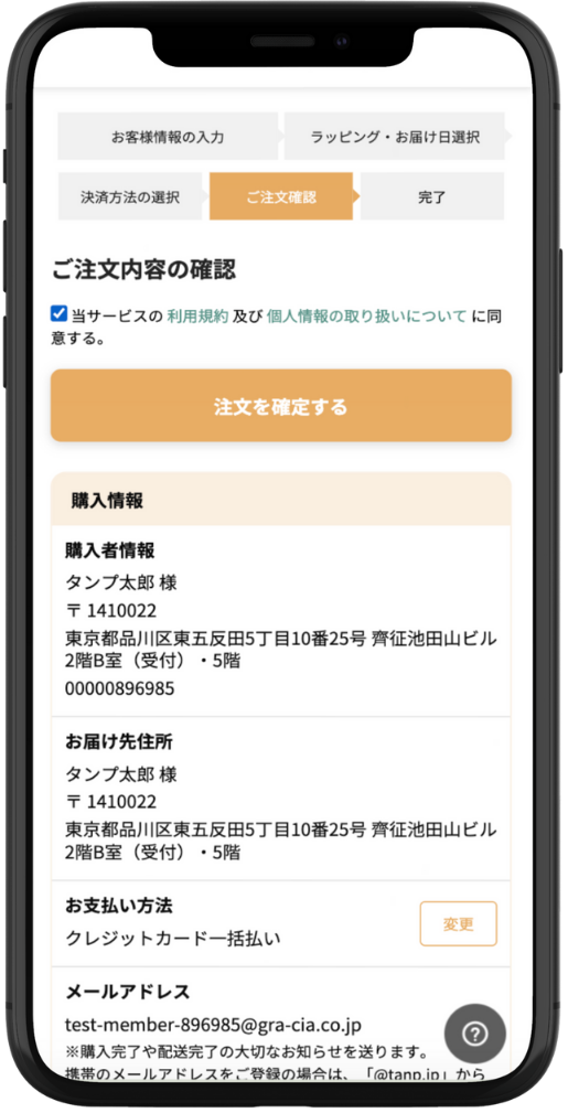 ご注文内容をご確認の上、誤りがないか確認して「注文を確定する」ボタンをクリックしてください。