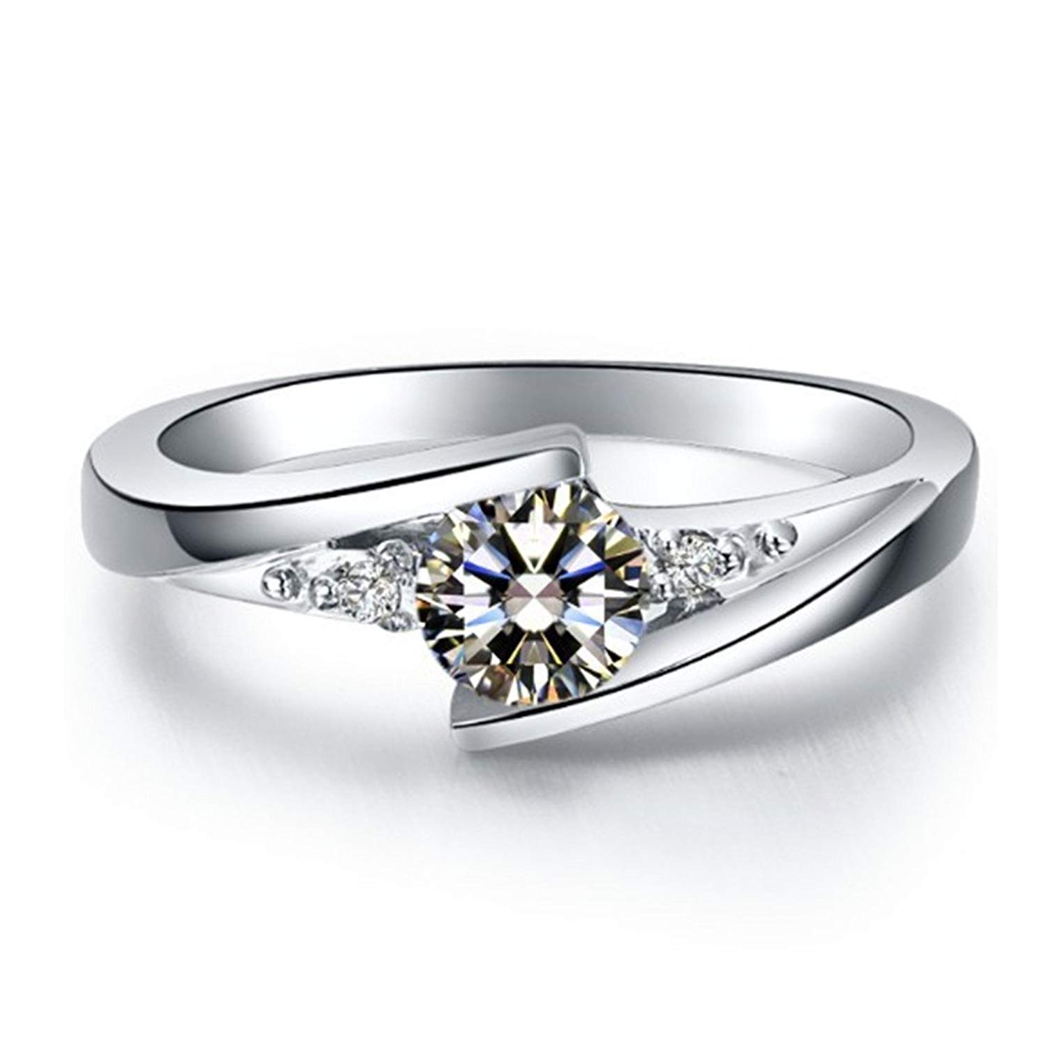 シルバーに18Kホワイトゴールドでコーティング、そこに最高品質のNSCDシミュレーションダイヤモンドを埋め込んだリングです。 リングのラインがダイヤモンドを斜めに囲む事で、ボリューム感を出して生きます。 付き合っている年数が増え、結婚のきっかけがなかなか掴めない!、そんなときにサプライズでプロポーズリングと供に、結婚の話を真剣にしてみることです。