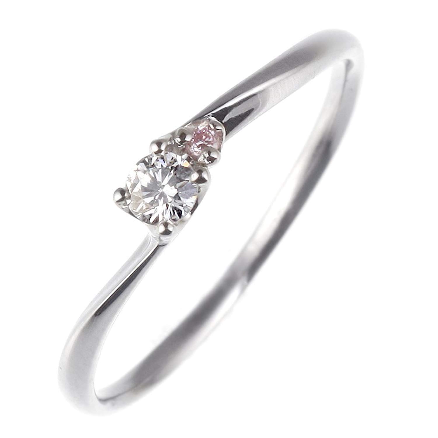 エレガントなカーブと小さいけど存在感があるピンクダイヤモンド、それを見守るように部リリアンカットのダイヤが寄り添っています。 リングはプラチナ、何時まで立ってもその輝きを保つ事が出来ます。 またこのリングのデザインは指を細く見せることでも知られています。 彼女にそろそろ真剣に考えよう!結婚!と言うメッセージを込めてプロポーズしましょう。