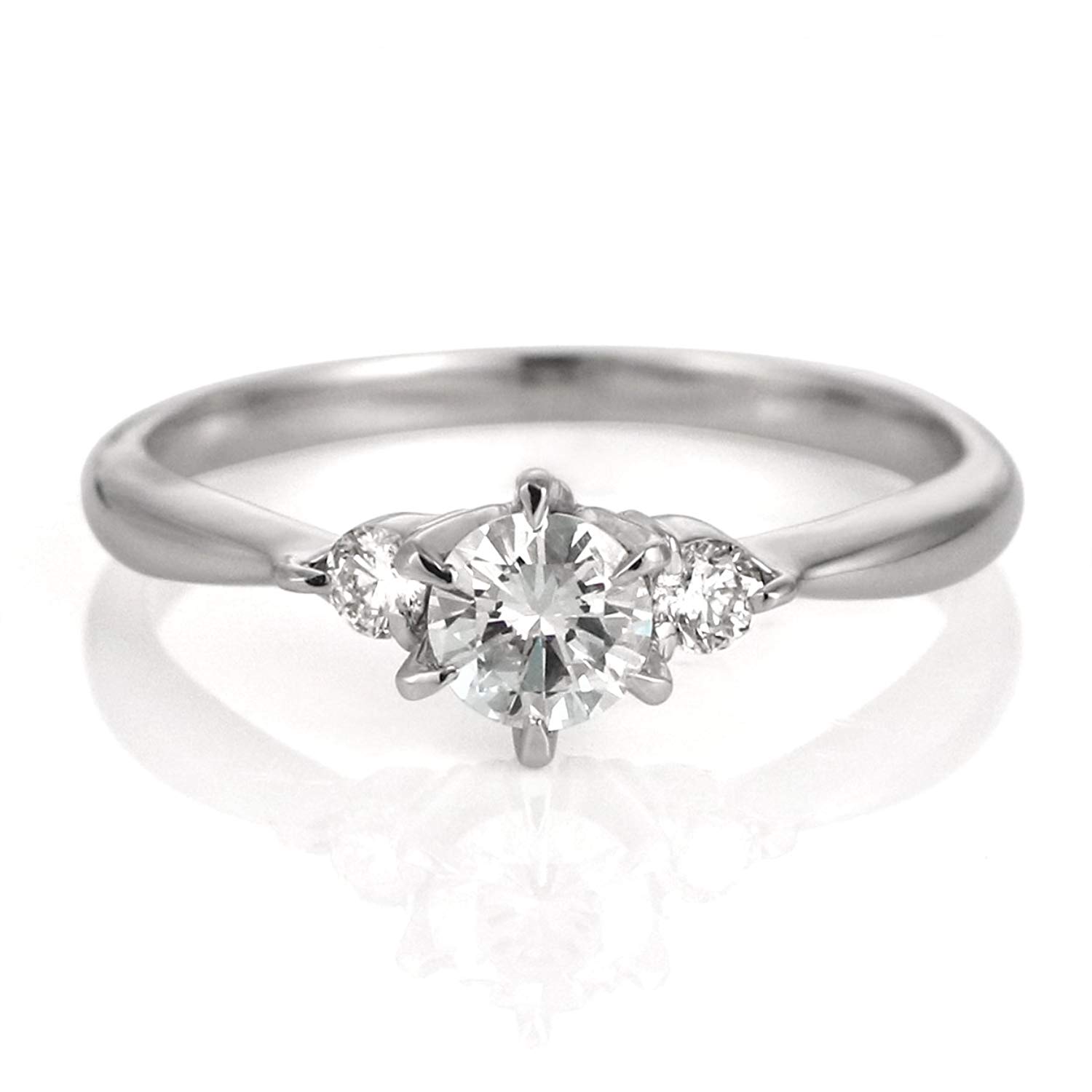 ちょっと大き目のダイヤを中心に、両側に小さいダイヤをあしらった贅沢なリングです。 肌に優しいプラチナのリング、大切な彼女に真剣な思いを伝えられます。 プロポーズリングは誕生日やクリスマスのプレゼントじゃなくて、ちゃんと結婚したいという意志を伝える物、だから特別なリングを贈りましょう。 サイズがわからない? 大丈夫、プレゼントを渡した後でもサイズ直しは出来ます。