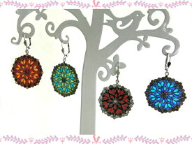 フランスの職人が一つ一つ手作りしたステンドグラス型のピアスです。 見る角度によって色合いが変わるおしゃれなデザインです。