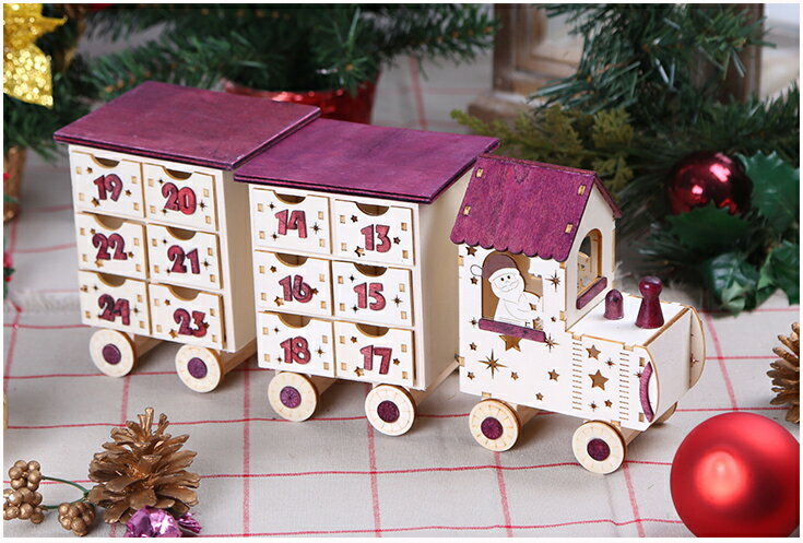 汽車型のアドベントカレンダーは、可愛らしくて思わず笑みがこぼれそう。クリスマスの置物として飾っておくだけでも素敵です。ボックスの中には小さなキャンディなどを入れて、楽しむのもおすすめですよ。お子さんのいるご家庭へのプレゼントにもぴったり。