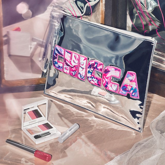 CHICCA(キッカ)の今年のコフレは、ピンクのロゴがかわいいメタリックポーチの中に入っています。 なんと現品サイズの「フローレスグロウ リッドテクスチャー アイシャドウ 」に「スパークリングポットライナー」、そしてミニサイズのマスカラがセットになっています。 アイシャドウはライトカラー、シェードカラーが一緒になっているので、これひとつだけで立体感、ツヤ感のある目元が完成します!