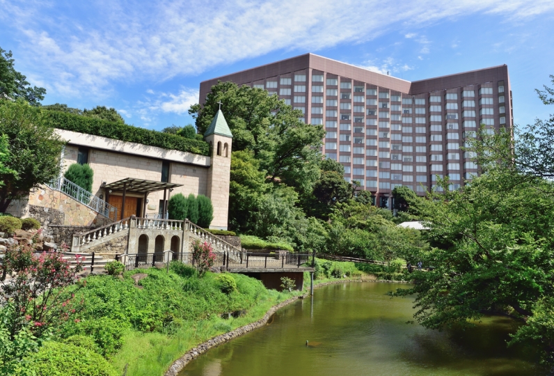 目白駅からバスで10分程度、神田川沿いの日本庭園に面して作られたのがホテル椿山荘です。 東京最大規模のスパとフィットネスジムを兼ね備えており、天井は開閉方で全天候に対応可能です。 椿山荘の日本庭園は、五重塔もそびえたつ貴重な日本の文化財でもあります。 四季折々の美しい花々を楽しめて、結婚写真などで多くのカップルが利用します。