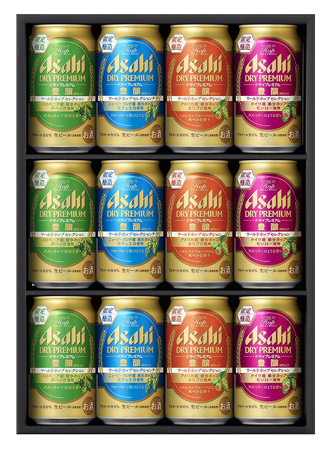 普段はなかなか手に入らない、世界の希少ホップが楽しめる、バラエティ豊かなアサヒのプレミアムギフトセットです。 味はもちろん最高品質ですが、何と言ってもビールとは思えないカラフルな缶は見ているだけでワクワクしてしまいます。 ビール好きな方へのプレゼントとしては本当におすすめです。