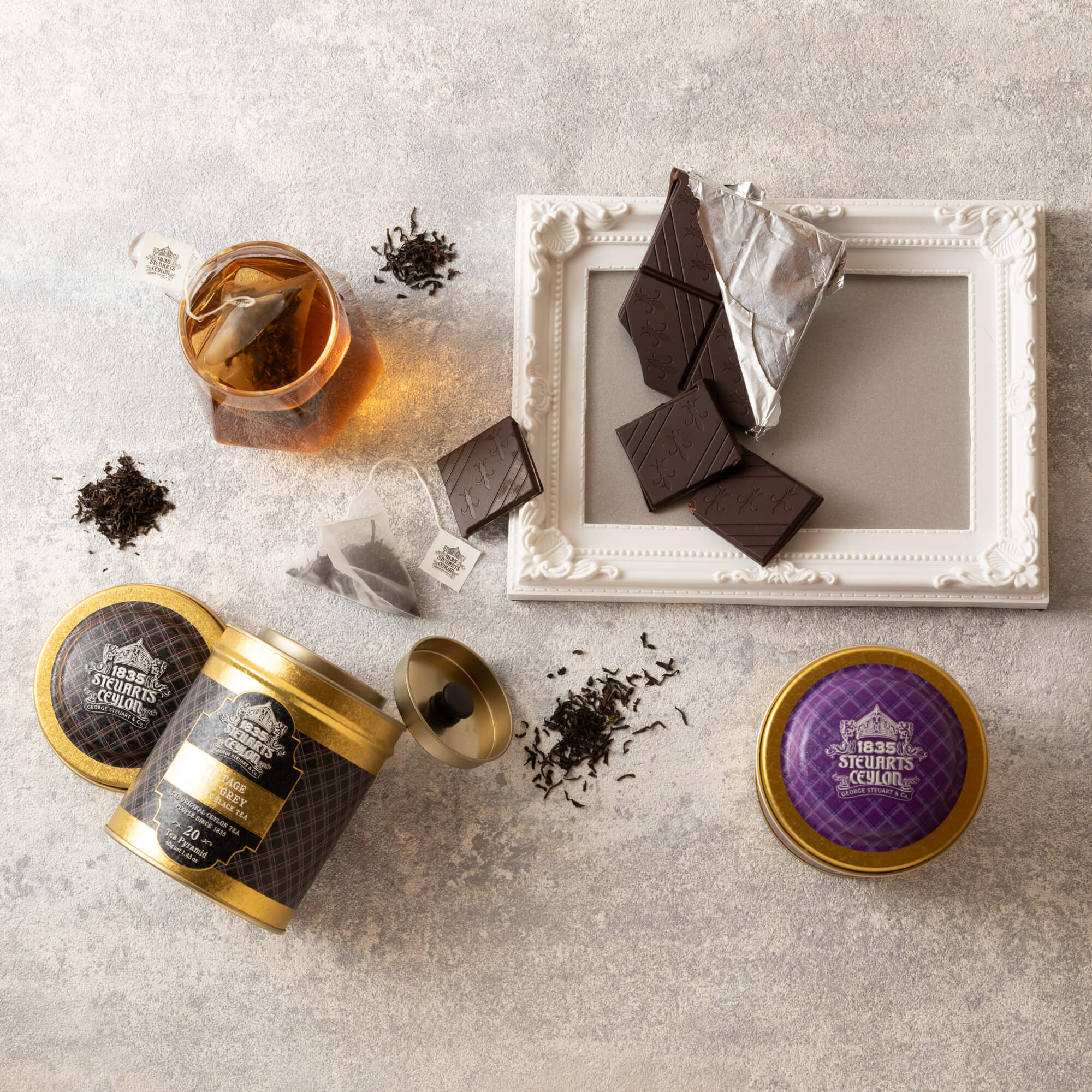 【ファーストクラスで採用された紅茶】George Steuart Tea トライアングルバッグ2缶セット(ヴィンテージアールグレイ×クイーンズチョイス)