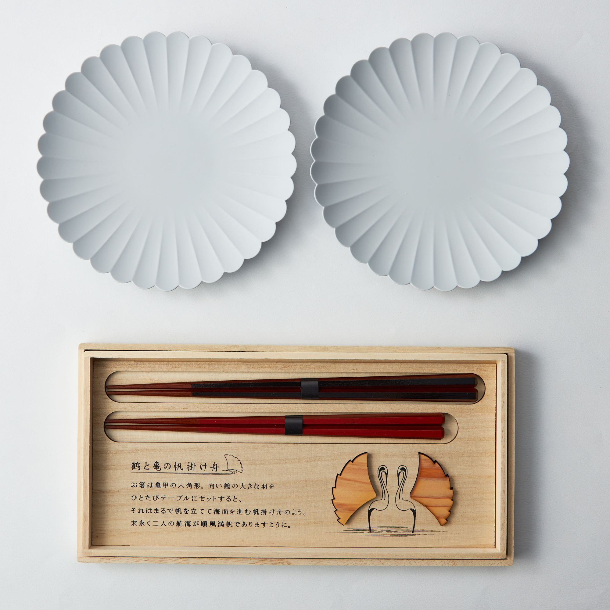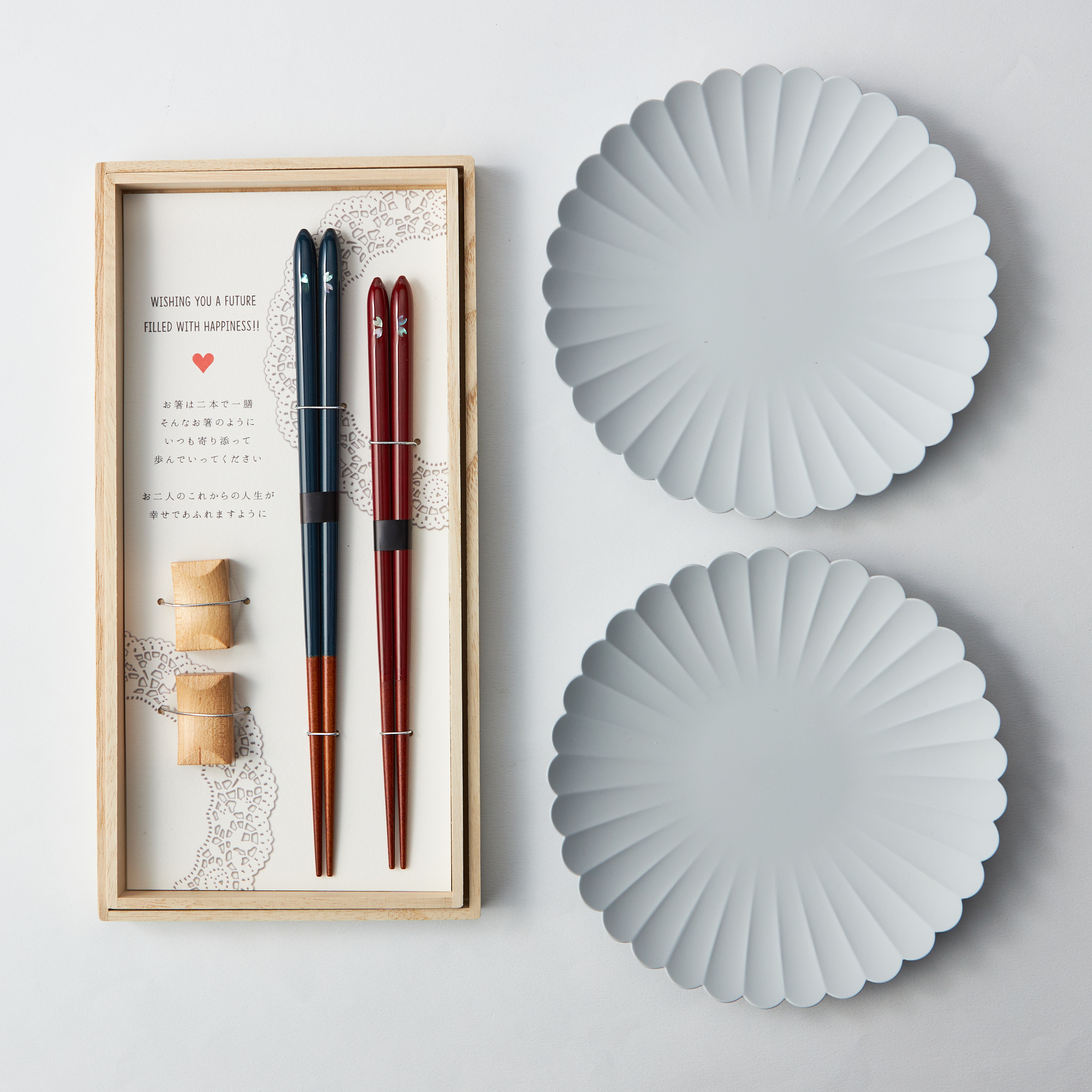 結婚してこれから海外に住む方に差し上げます。外国でお箸は手に入っても自分たちのために敢えて選んで購入する機会はないだろうし荷物の負担にもならないと思ったので選びました。木箱も品があって素敵です。箸セットとプレートと別々の箱で2つに分かれています。有料でもいいのでプレートと箸セットを一緒の箱が用意されていたらと思いました。その旨も商品説明にあったら参考にできたらと思うのでマイナス1にしました。
