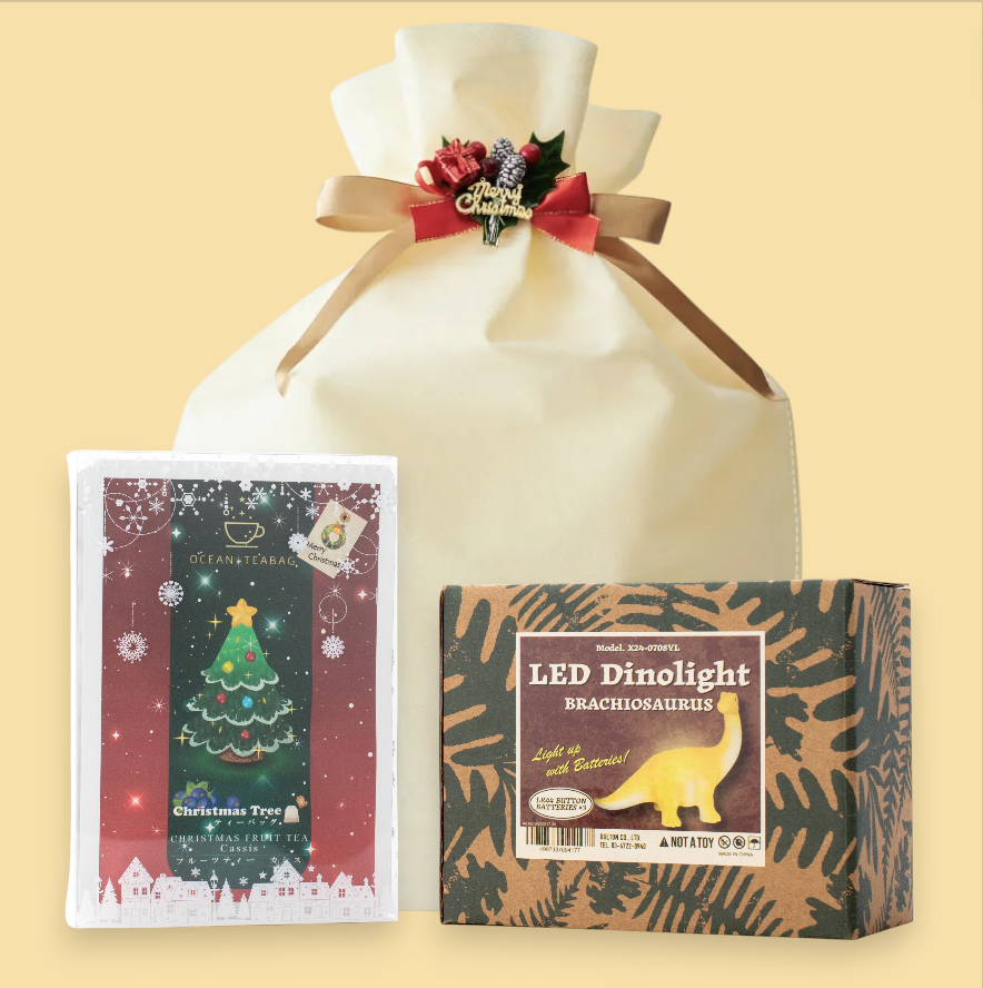 手のひらサイズの恐竜ライトと選べる紅茶のセット