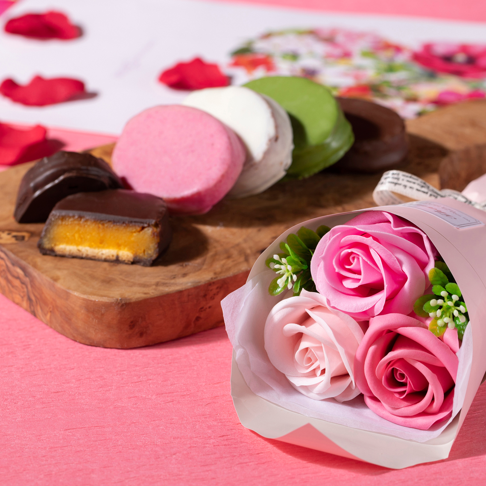 【花セット】 安納芋トリュフ10個+ミニブーケ(ソープフラワー) ギフトセット