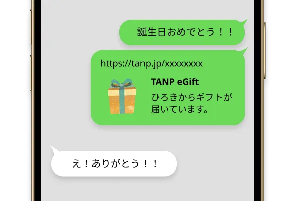 eギフトならその場でURLをシェアすれば気軽にサプライズができます。
