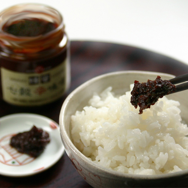 炊き立てのホカホカご飯の一口目や、あと少しだけおかわりしたいな、という時…。 うま辛おかず味噌「蜂蜜七穀辛味噌」でどうぞ! 無農薬栽培の国産七穀米を香ばしく炒り、玉ねぎやピーマンなどの野菜と水を加えて煮込みます。ギュギュッと煮詰めてうまみを凝縮させたところに、豆味噌独特のほのかな渋みを持つ八丁味噌と、米味噌ならではの酵母の香りと多少の酸味が特徴の味噌を独自のバランスでブレンド。 七穀のツブツブした食感、あわせ味噌の適度な風味と甘さ、香り、塩加減が絶妙です。 お箸が止まらなくなる天然素材の美味しさです。