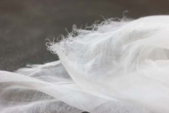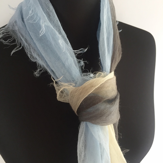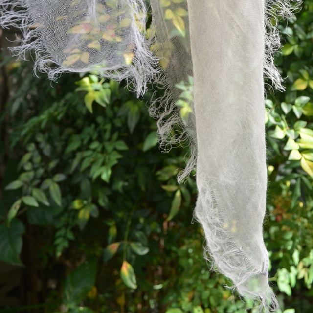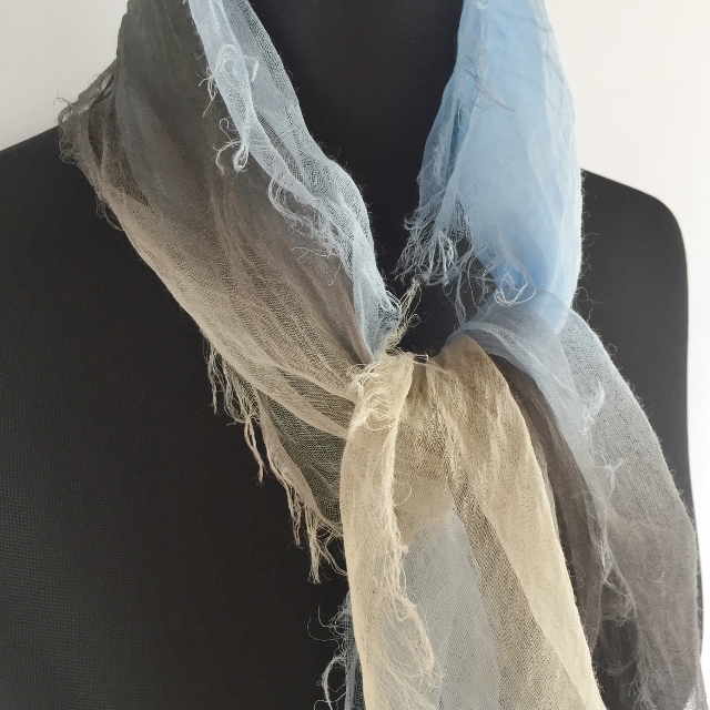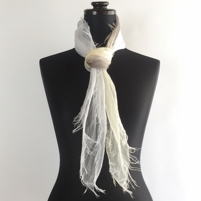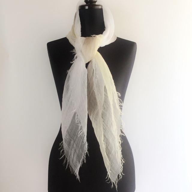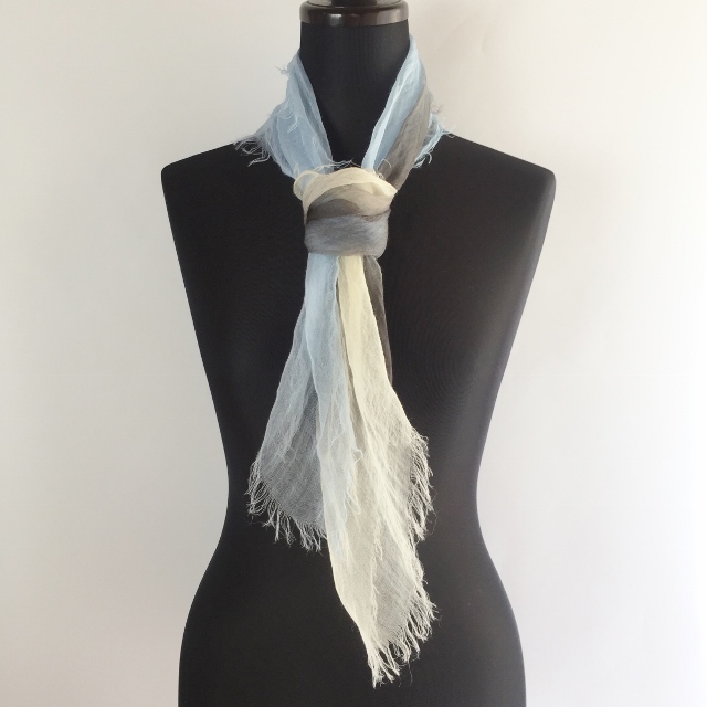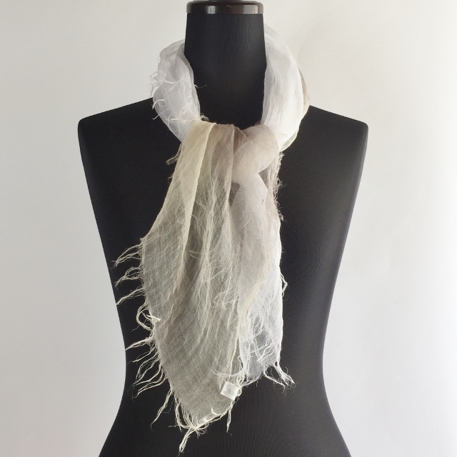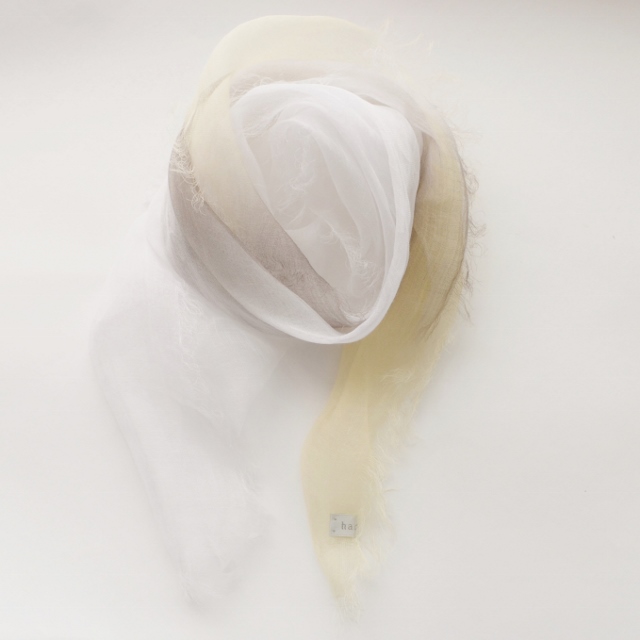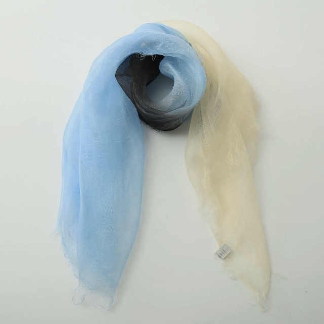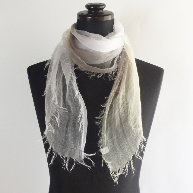 その重さは、なんと9g! 超極細の糸で織ってあるので、肌触りはとてもしなやかで、 よく麻にありがちなチクチクした不愉快さは全くありません。 巻いているストレスを感じさせないストールです。